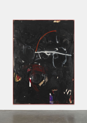 2010, oil, lacquer, paper and wood on canvas, 180 x 130 cm